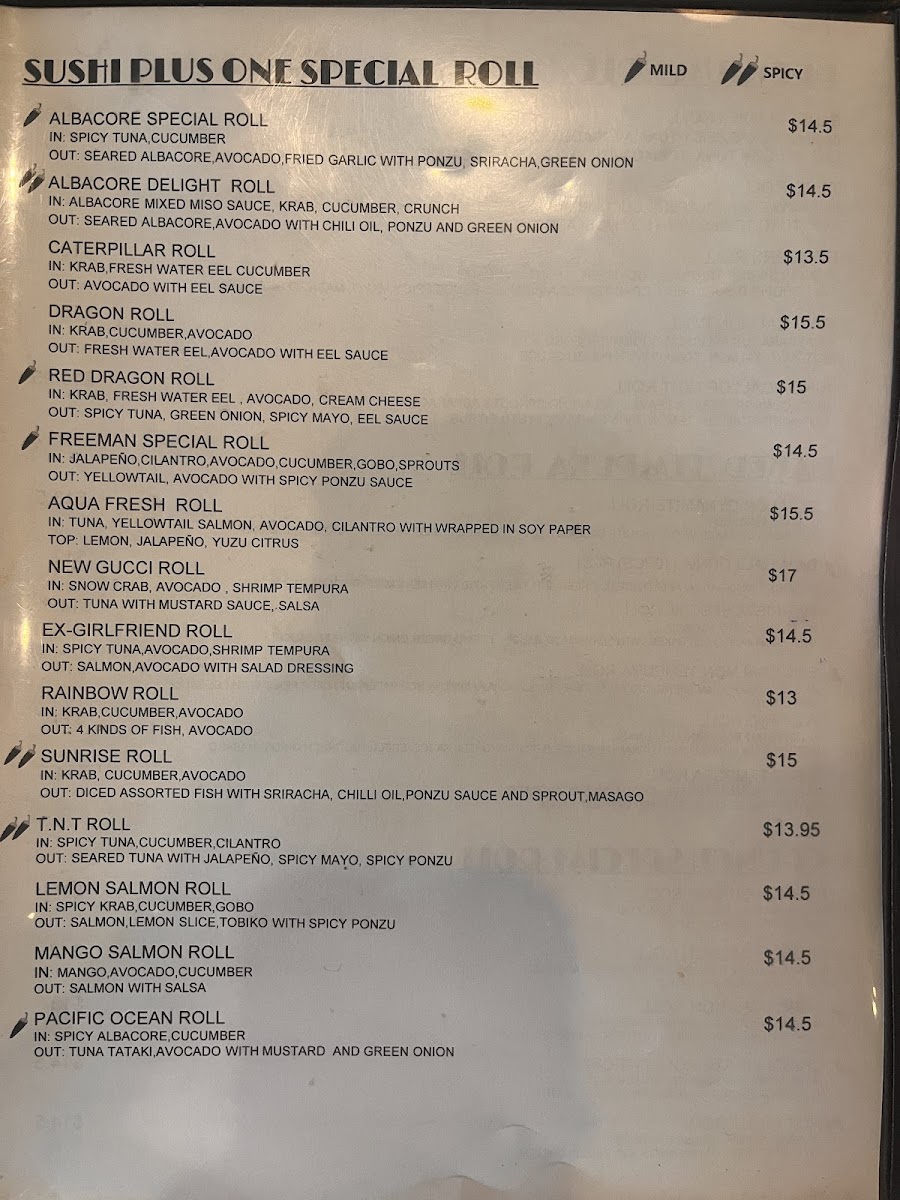 Welcome to Sushi Plus One, a hidden gem nestled in Murrieta, California that promises a delightful culinary experience. Offering a wide array of sushi options, from classic rolls to inventive appetizers, there's something for everyone. Start your meal with Vegetable Egg Rolls or Jalapeno Bombs, which are sure to tantalize your taste buds. For the main event, the sushi rolls are crafted with fresh, high-quality ingredients that melt in your mouth, earning rave reviews from patrons.