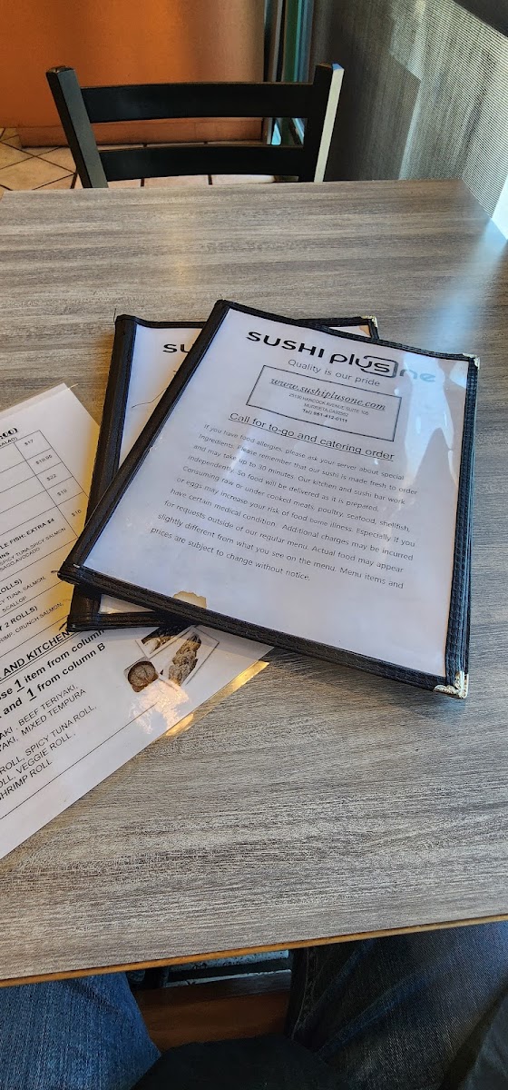 Families will appreciate the dedicated kids' meals, ensuring even the youngest diners are well catered for. Vegetarian options abound, including the Avocado Roll and Veggie Tempura Roll. Crisp ingredients and meticulous preparation reflect the chefs' passion for sushi-making. With a welcoming atmosphere and attentive service, Sushi Plus One is a must-visit for sushi lovers. Come explore their vibrant menu and indulge in a dining experience that keeps customers returning.
